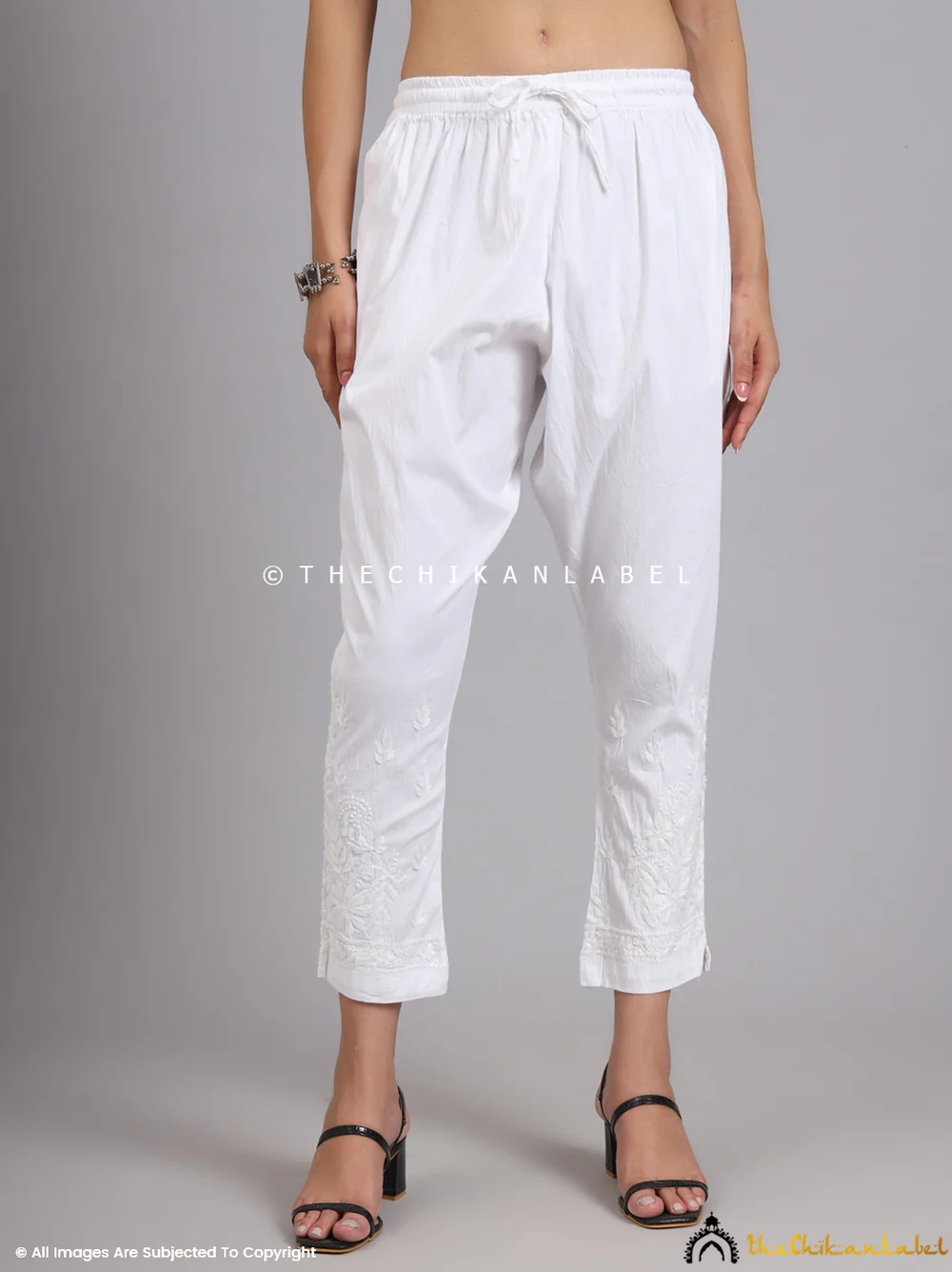 White Umika Lycra Straight Chikankari Cigarette Pant
